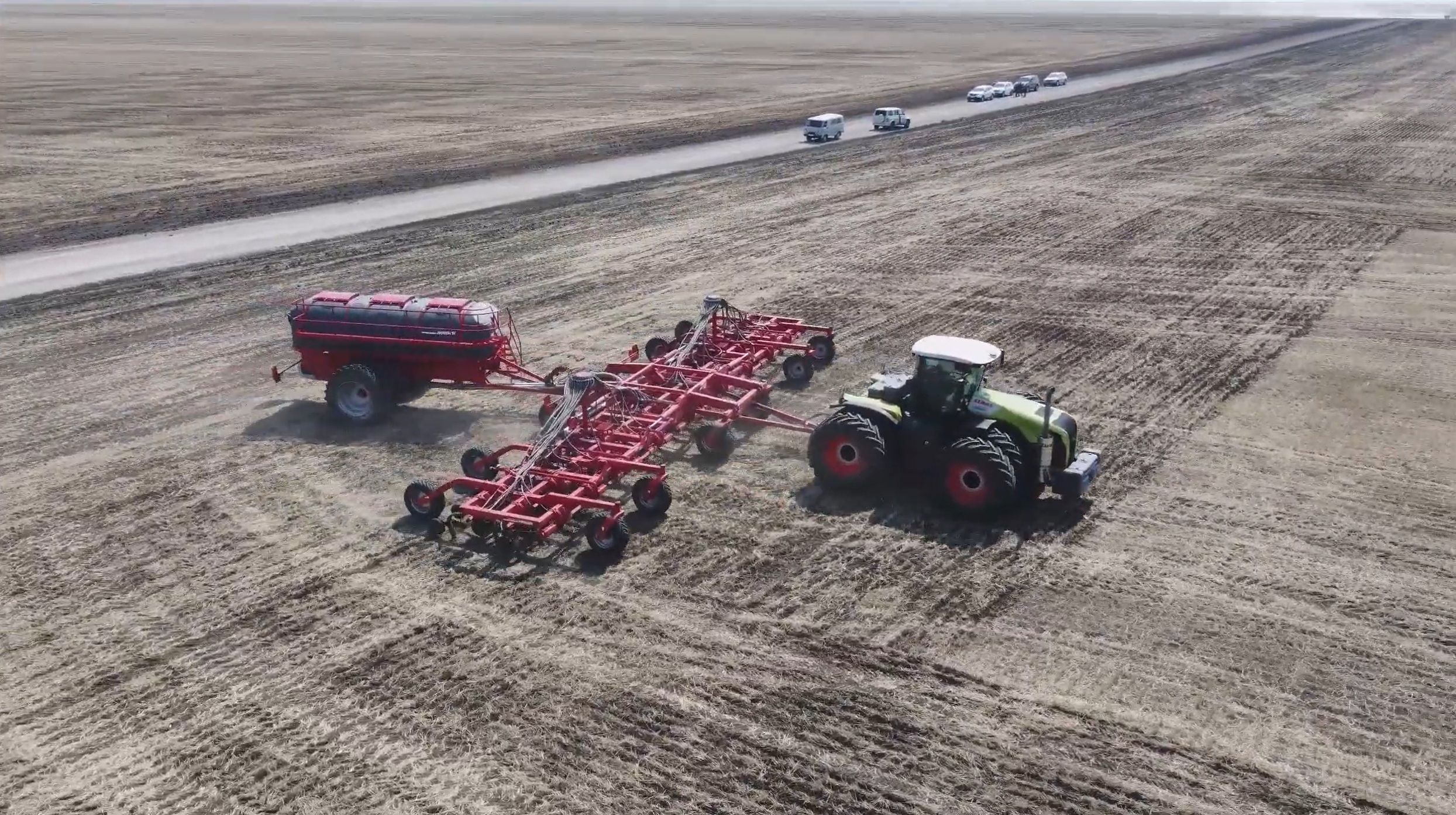 Photo source ALdanysh Zhalelov Посев чечевицы в Казахстане обычно делают сейчас при помощи посевных комплексов (Atameken Agro)