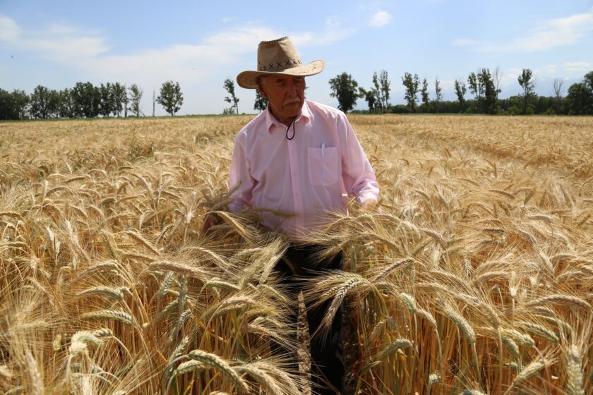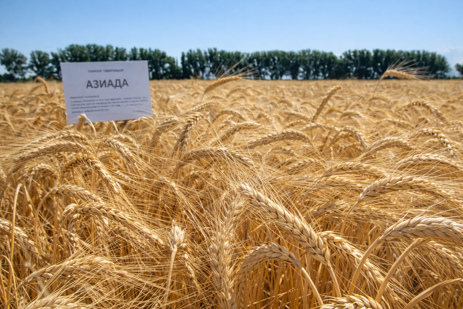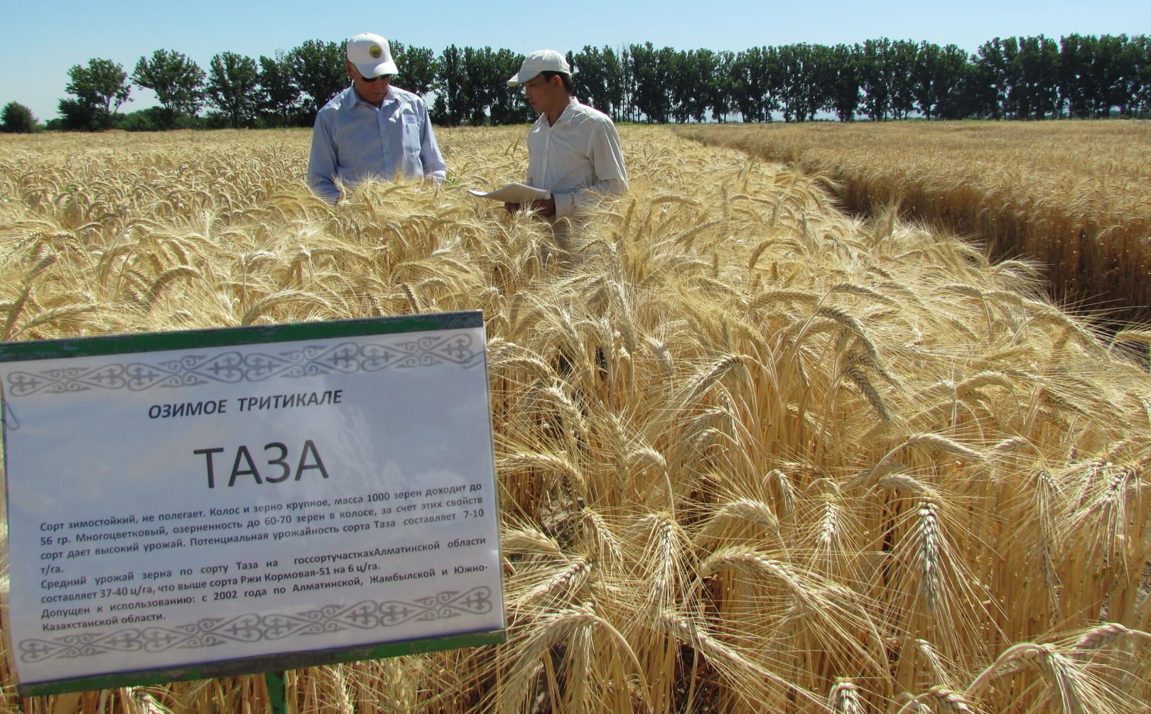 На фото - озимое тритикале сорт Таза. Озимое тритикале более устойчивое к вымерзанию чем озимая пшеница, но эта разница не очень значительная, поэтому в Казахстане озимое тритикале зимует в только южном и юго-восточном Казахстане. На хорошо защищенных лесополосами полях!