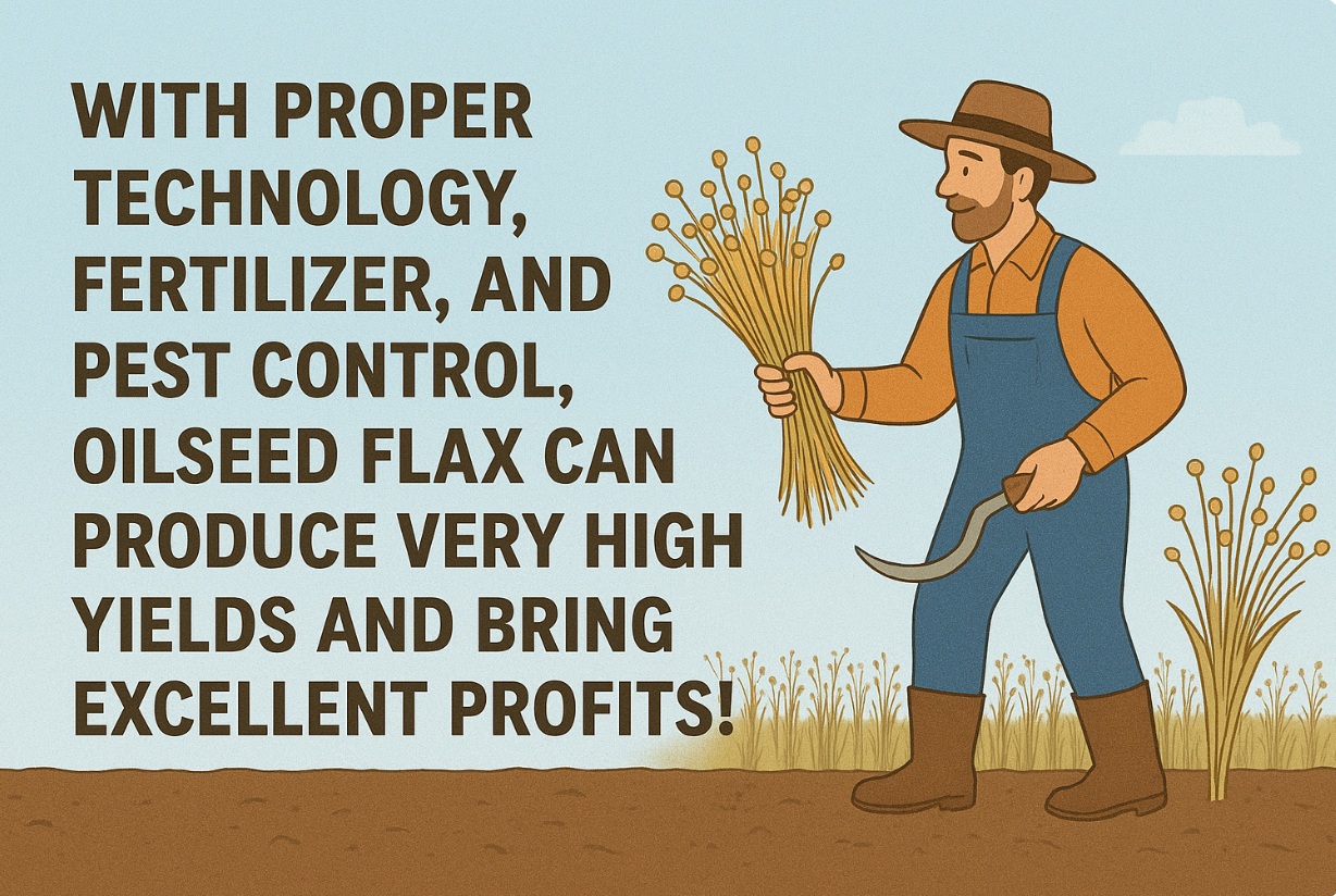 При правильном расчете технологии выращивания, применения удобрений и системы защиты масличного льна, он дает очень высокие урожаи и выращивание его будет высокоприбыльным!